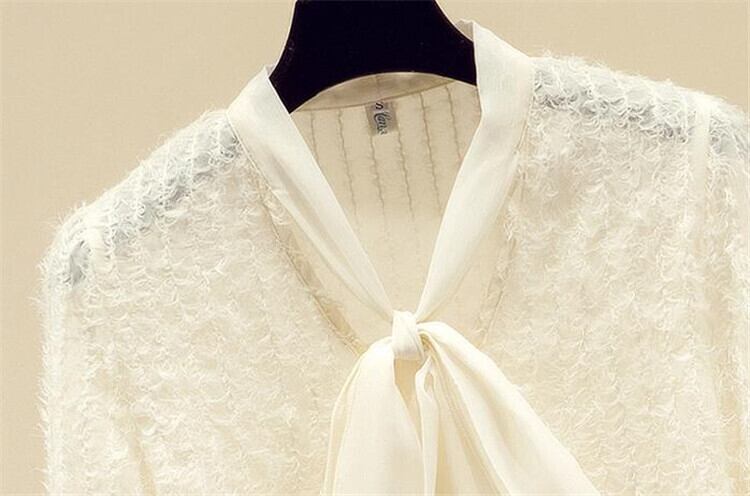 洗練されたシルエット 韓国ファッション 蝶結び ホーンスリーブ タッセル シフォン