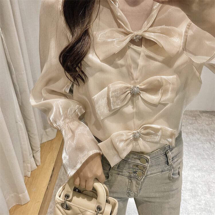 ブラウス 気質 POLOカラー 蝶結び 長袖 シャツ