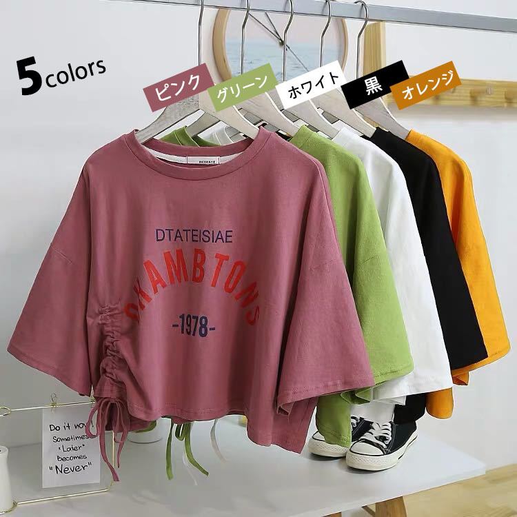 シャーリング付きカラーTシャツ